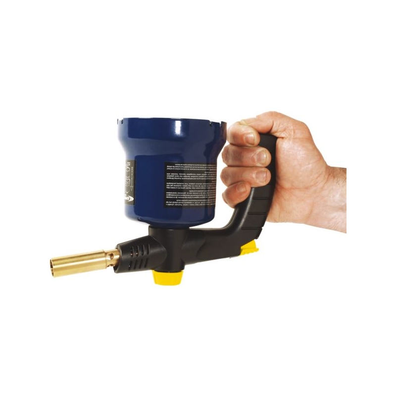 Allumage Piezo. Grande autonomie supérieure à 1h15. Cloche en métal. Flamme dard. Travail tête en bas pendant 15 sec. Température de chauffe : 1850°C Longueur fausse flamme : 170 mm Tuyère : 16 mm