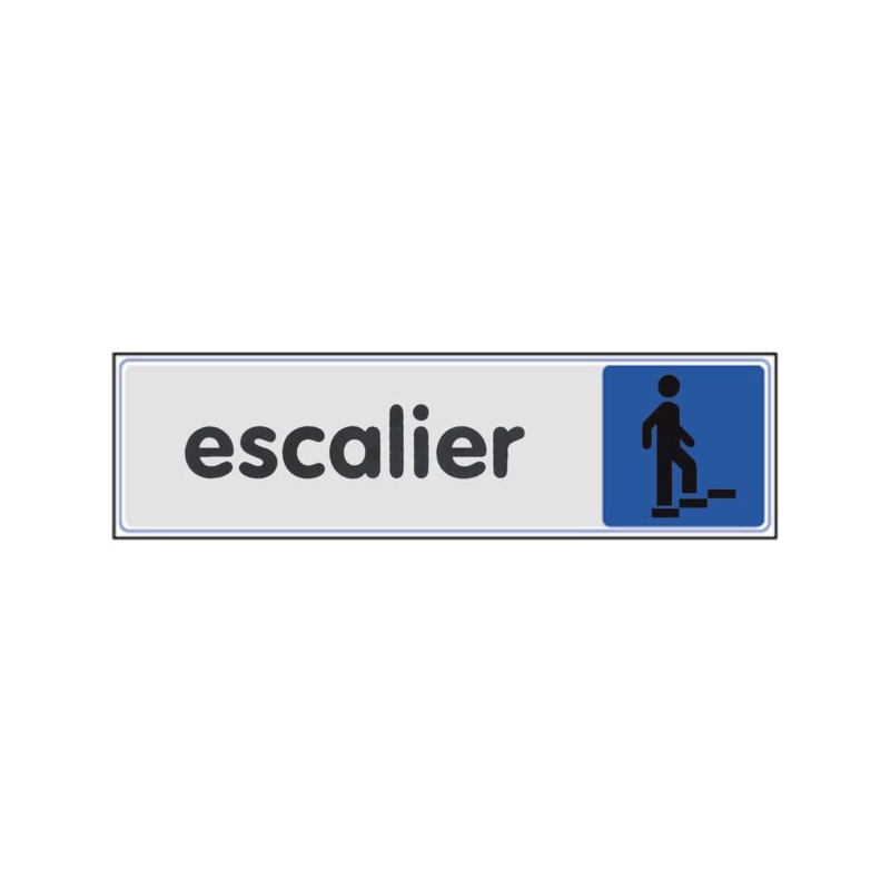 En plexiglas, textes et logos imprimés au verso, aspect brillant durable et nettoyage facile. Fixation par adhésifs puissants pré-positionnés. Conforme aux normes AFNOR. Dimensions : 170 x 45 mm Coloris : fond argent, textes et logos noirs, logo sur fond couleur