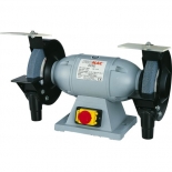 Arrêt d'urgence à accrochage en façade. Écrans de protection en polycarbonate. Sortie Ø 36 mm pour aspiration des poussières. Puissance : 0,45 kW Vitesse de rotation : 2850 tr/mn Dimensions meule : 200 x 25 x 20 mm Grain : 36 et 80 Poids : 21 kg